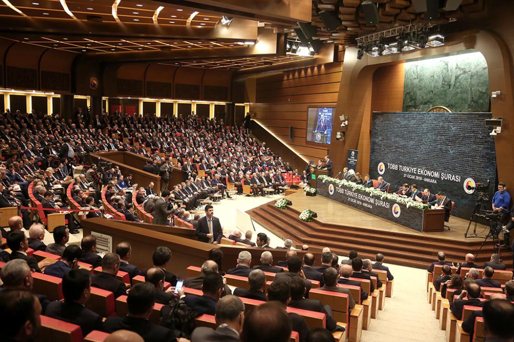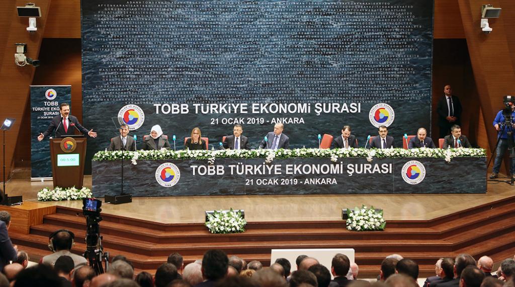 TOBB Başkanı M. Rifat Hisarcıklıoğlu'nun ev sahipliğindeki Türkiye Ekonomi Şurası; Cumhurbaşkanı Recep Tayyip Erdoğan, Cumhurbaşkanı Yardımcısı Fuat Oktay; Aile, Çalışma ve Sosyal Hizmetler Bakanı Zehra Zümrüt Selçuk, Enerji ve Tabii Kaynaklar Bakanı Fatih Dönmez, Hazine ve Maliye Bakanı Berat Albayrak, Milli Eğitim Bakanı Ziya Selçuk, Sanayi ve Teknoloji Bakanı Mustafa Varank, Tarım ve Orman Bakanı Bekir Pakdemirli, Ticaret Bakanı Ruhsar Pekcan, Oda ve Borsa Başkanları, Meclis Başkanları, OSB Başkanları ile çok sayıda iş insanının katılımıyla TOBB İkiz Kuleler Konferans Salonu’nda gerçekleştirildi. Şura’da iş dünyasının temsilcileri sorun ve çözüm önerilerini birinci ağızdan Cumhurbaşkanı Erdoğan ve Bakanlar ile paylaşma imkânı buldu.